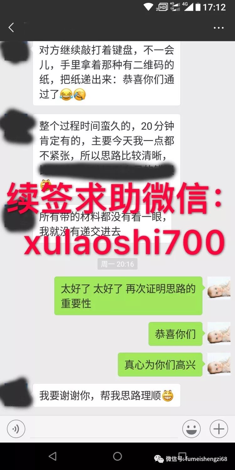 综上所诉,大家也看到了,整个过程还是非常惊险的,VO三次低头打字,客户巧妙的进行了3次引导,如果没有这3次巧妙的步步为营的引导是不可能如此顺利的获得签证的,所以特别是在签证官不问的时候,这个时候说与不说,或者是说什么,这个妈妈真的是很聪明,严格按照我们培训的思路来作答,可以说是一个可以借鉴的非常成功的案例。同时从妈妈写的详细过程中,我们也可以看到在排队等面谈的时候,如何巧妙选择VO也很重要。所以续签面谈想要获得成功,每一个环节都是环环相扣的,不是仅仅要知道准备哪些资料,或者知道VO要问哪些问题该怎么回答这么简单,而是从前期的方案设计,DS160表格的巧妙填写,材料的准备,面谈的套路和技巧的培训,面谈当天VO的选择,面谈当天的发挥情况,每一步都不能忽视,这就需要一个非常专业的续签指导,能够对各类可能情况进行多次模拟演练,才能让客户做到现场的镇定和从容,才能更好的发挥我们培训的思路顺利获签。